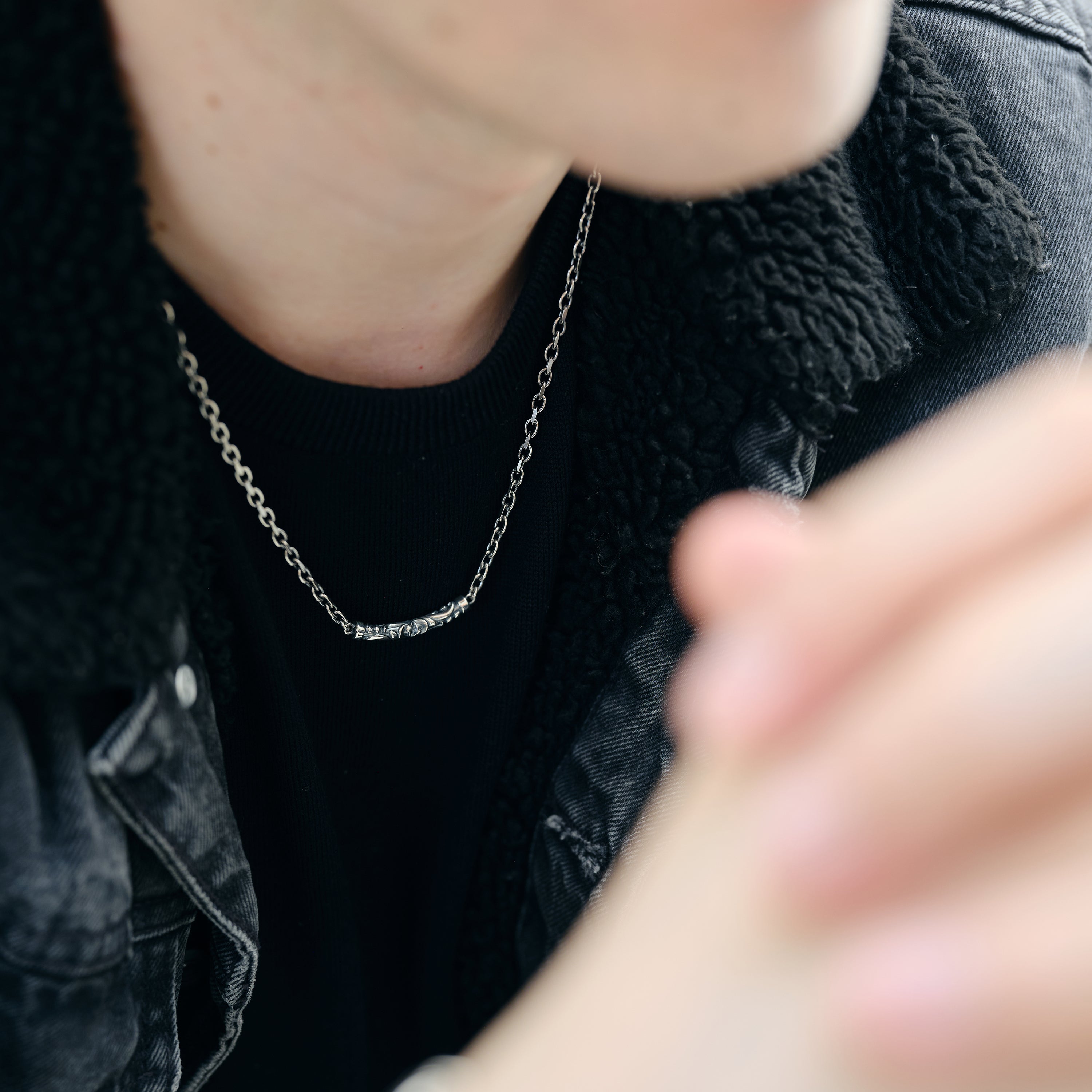 チェーンネックレス ロバストアラベスクモチーフ sv925 ブラックフィニッシュ