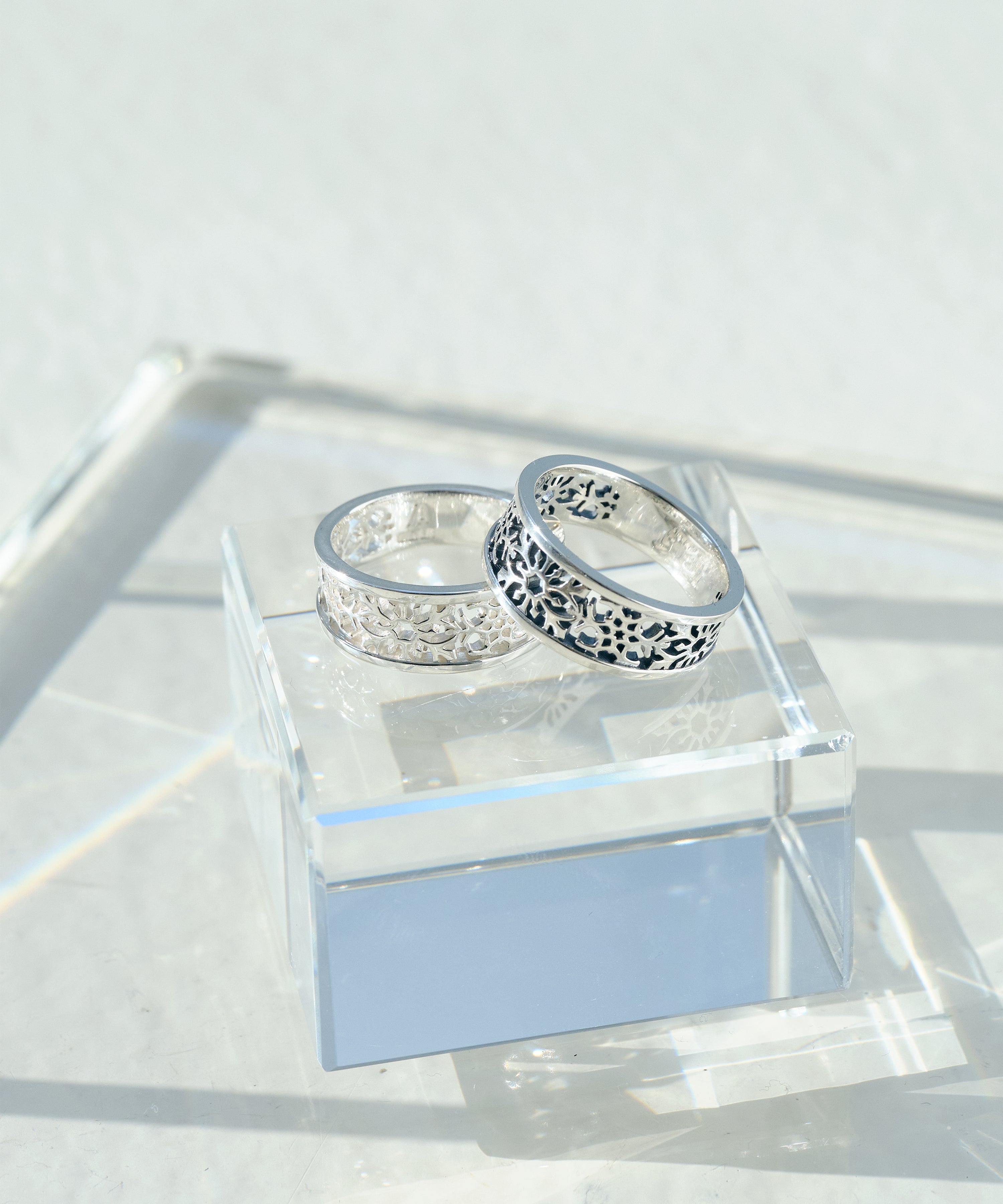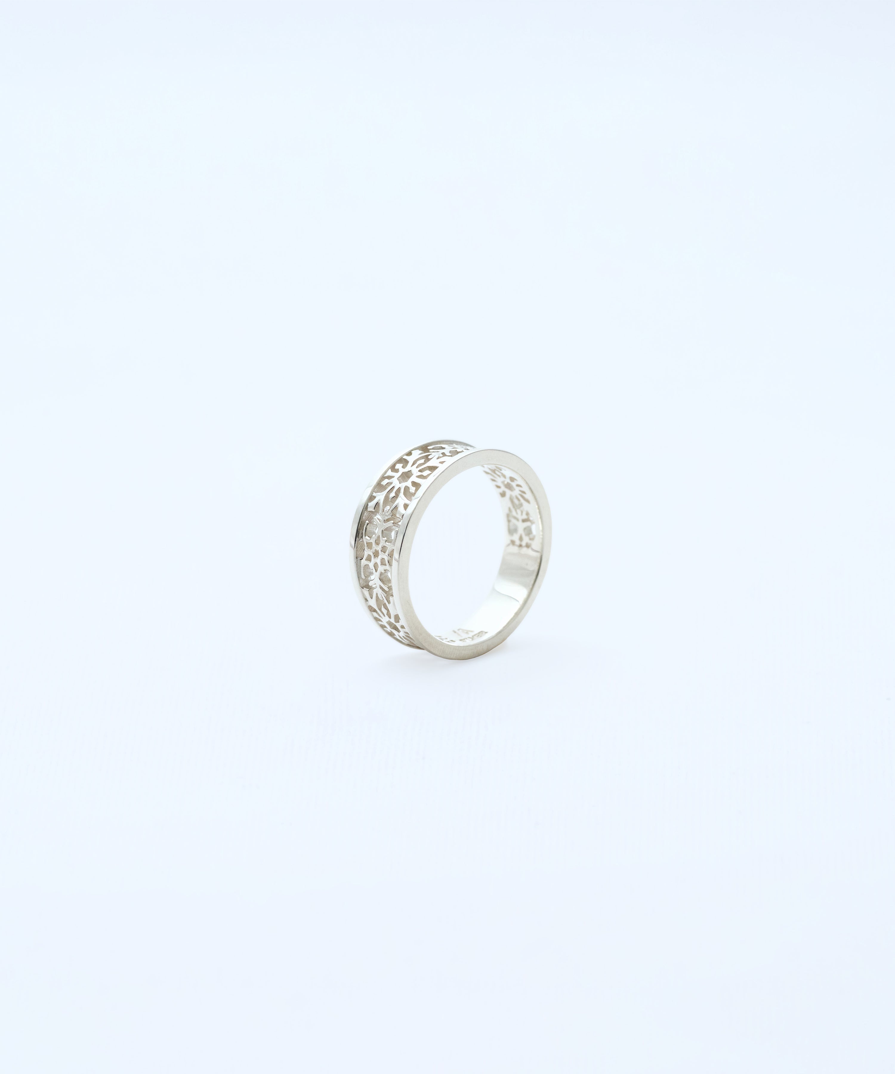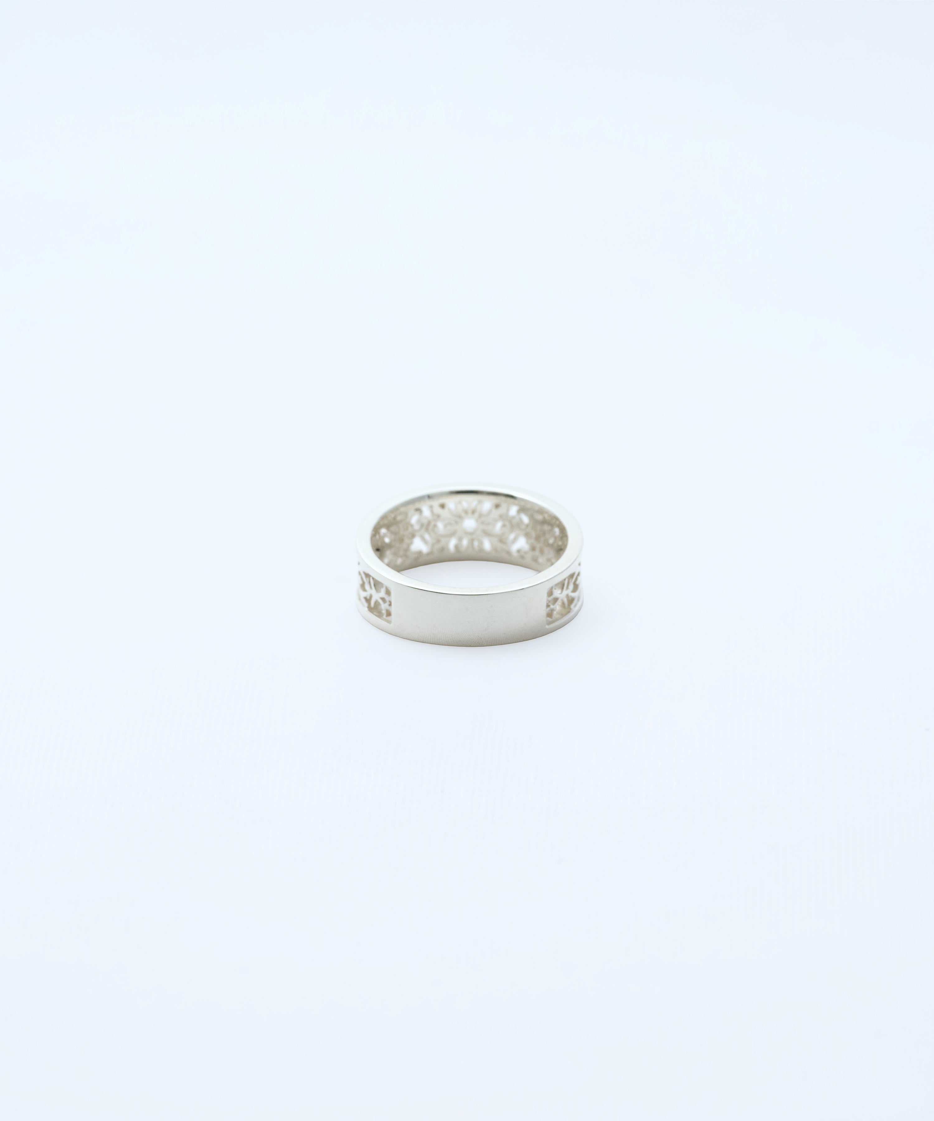 緻密な透かし彫りで表現したシルバーリング