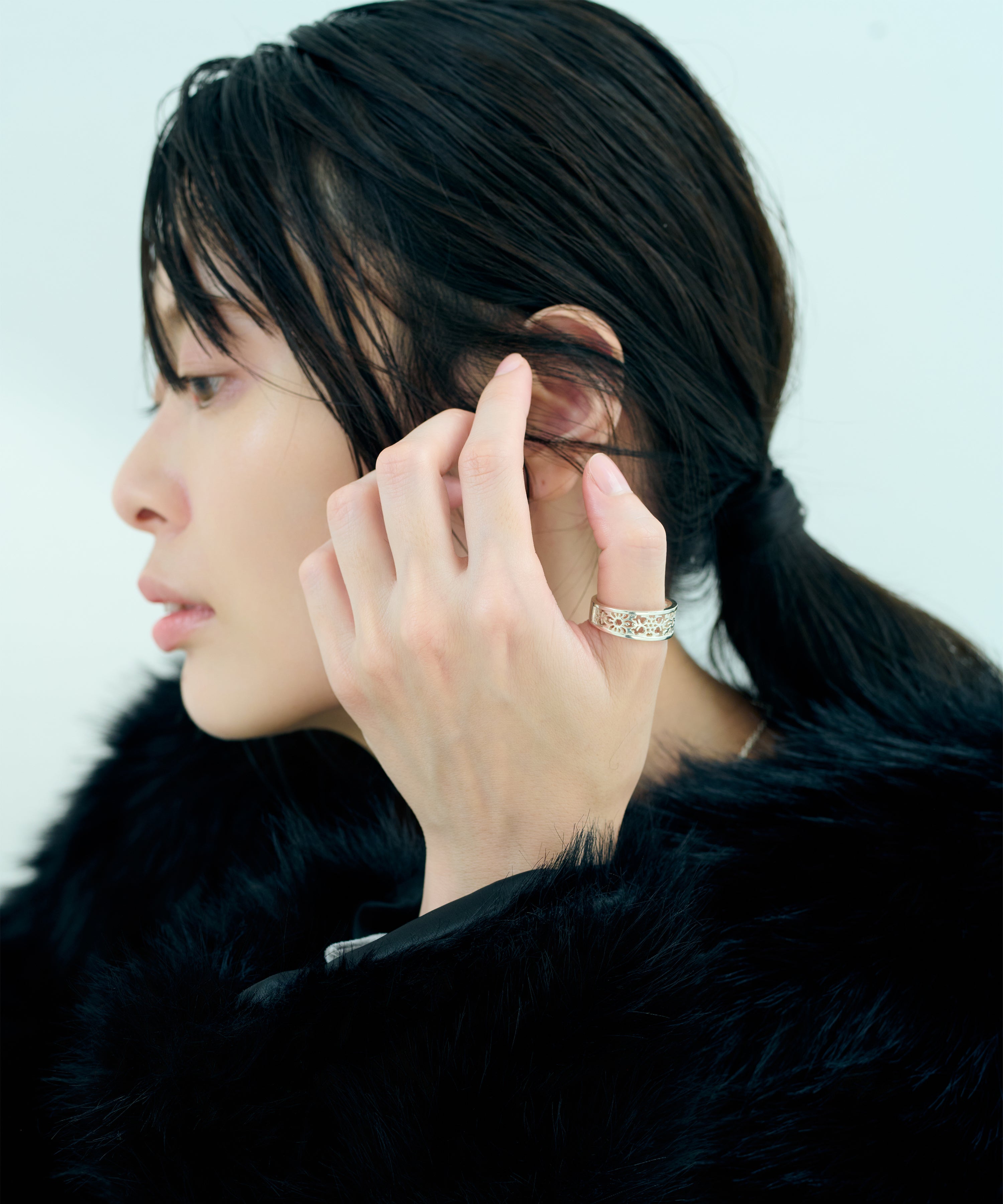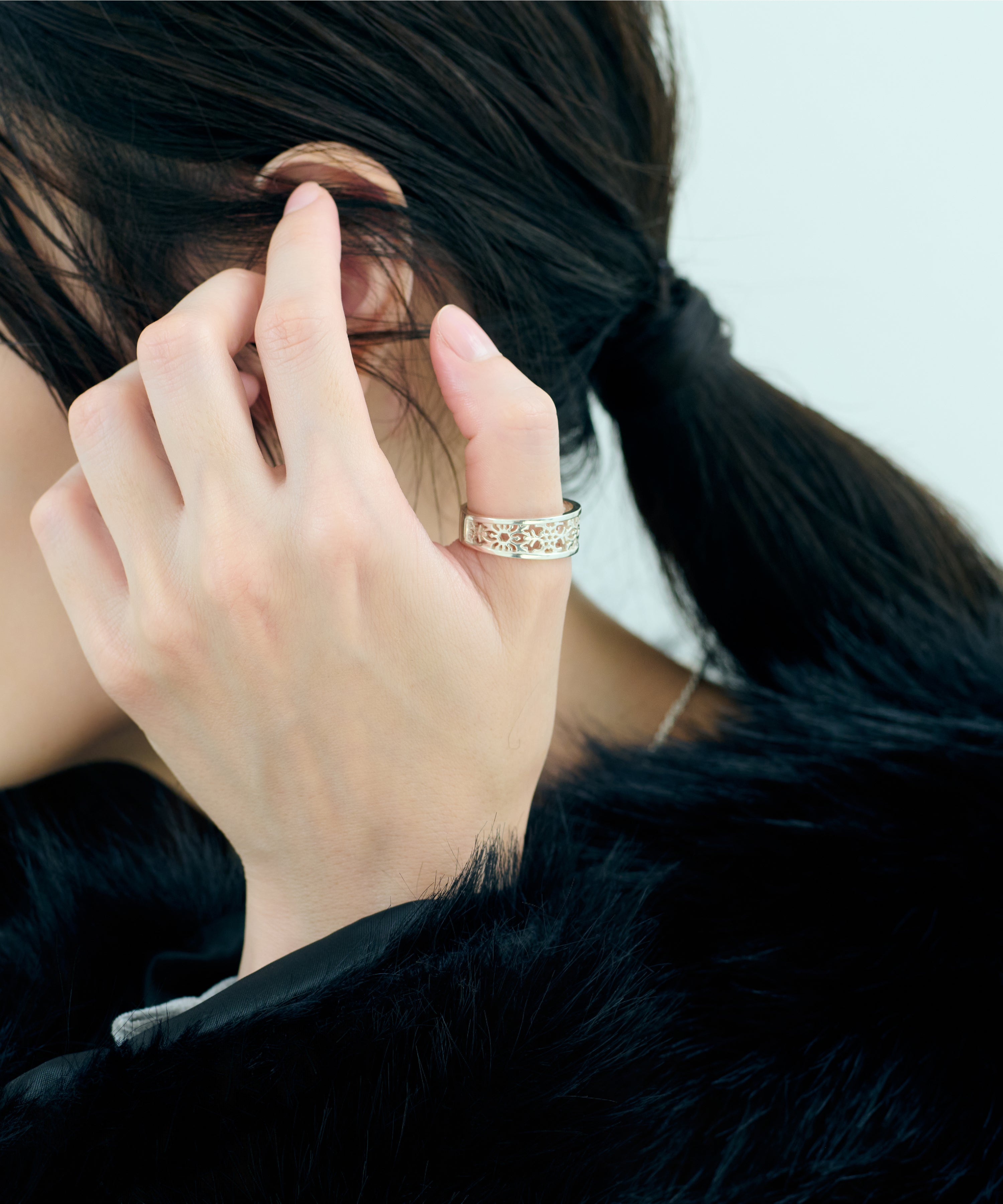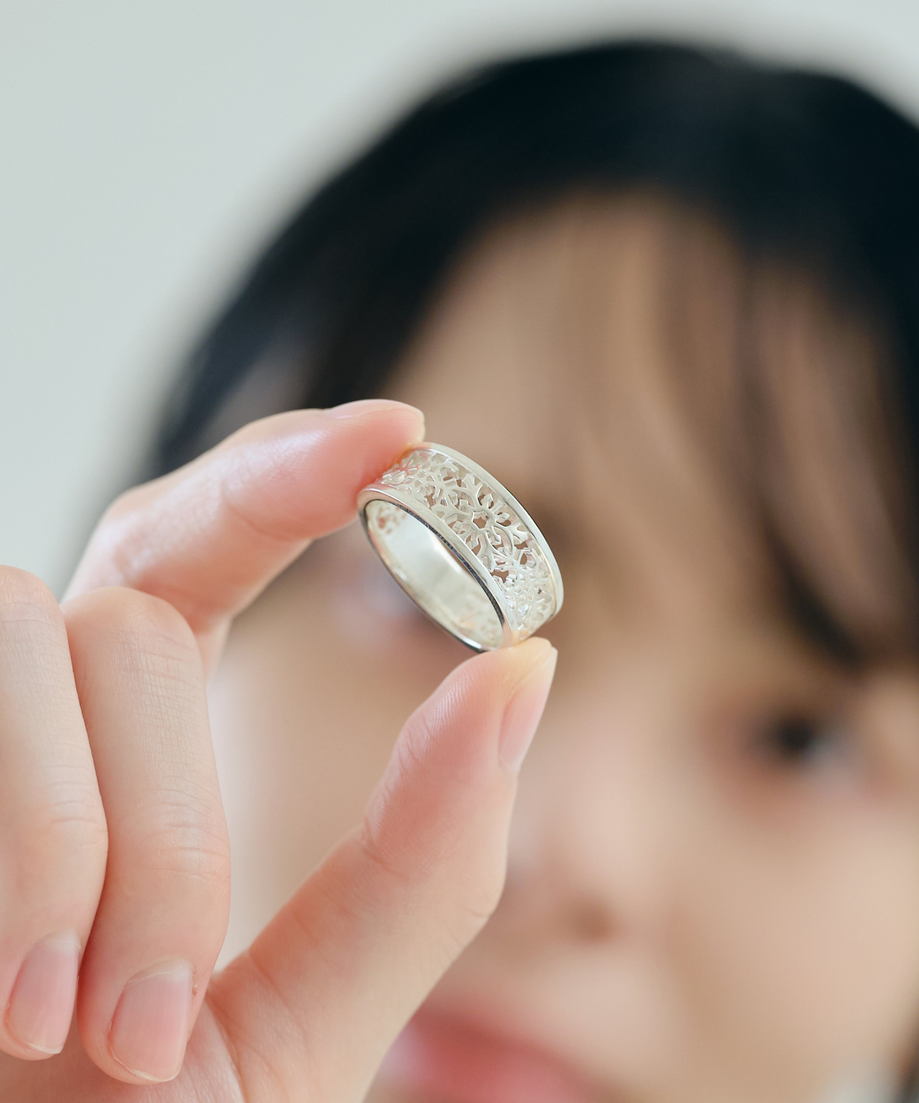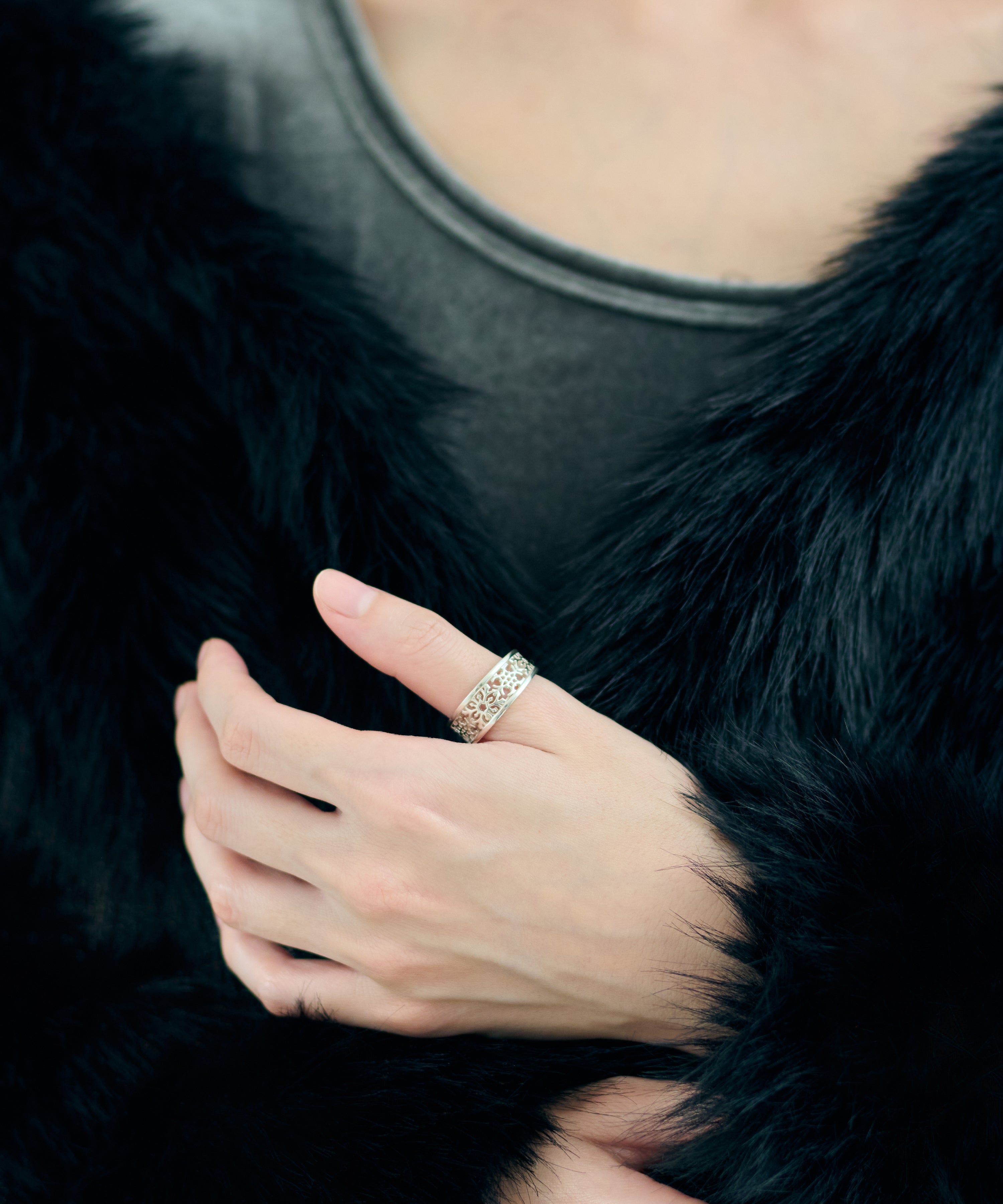 緻密な透かし彫りで表現したシルバーリング