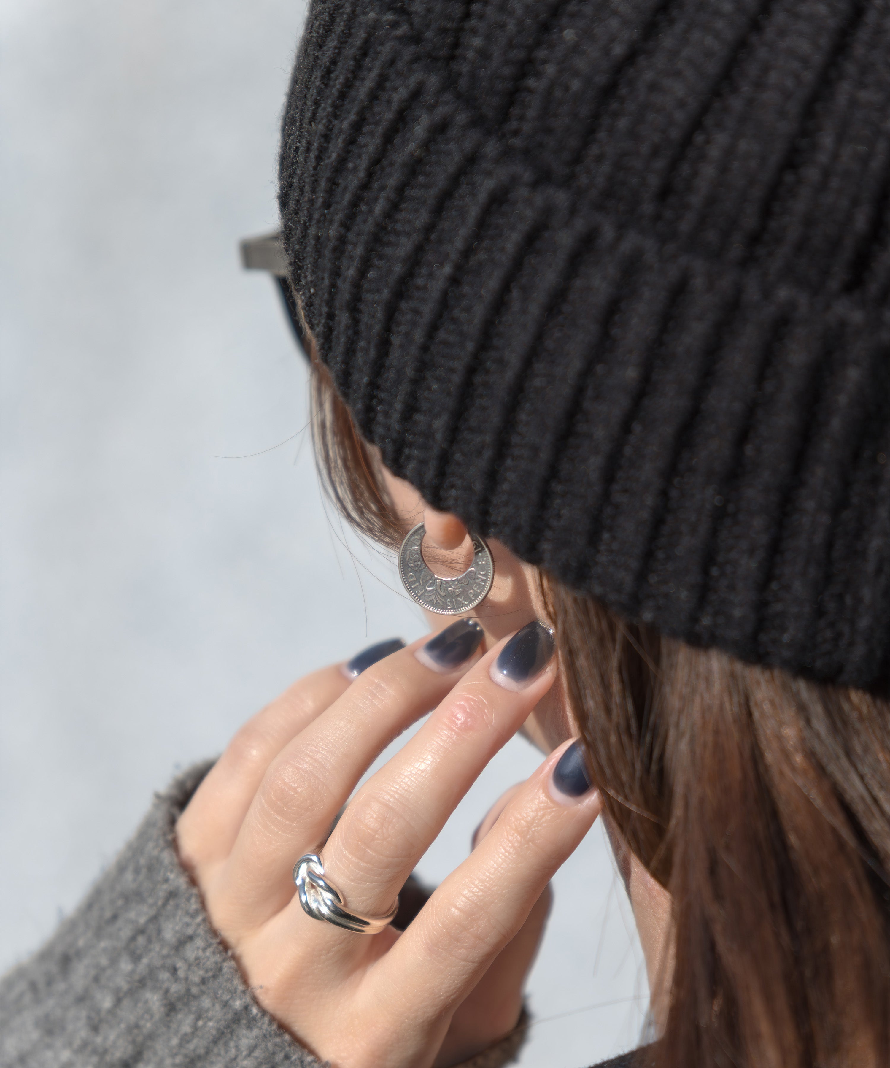 フープピアス 幸せのシックスペンスコイン シルバー